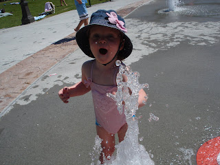 Last tuesday Bri and I took Kenidee and Mitch to the splash park. The splash park is so neat. one it is free, and during the summer the schools do free lunch for kids from 1-18. So we go and have lunch and play in the water. The kids loved it. Kenidee loves playing in the little fountans they are just her size but as the day went on she got more brave. I put her down the slide, she loved it. I got so wet! I looked like I went down the slide.